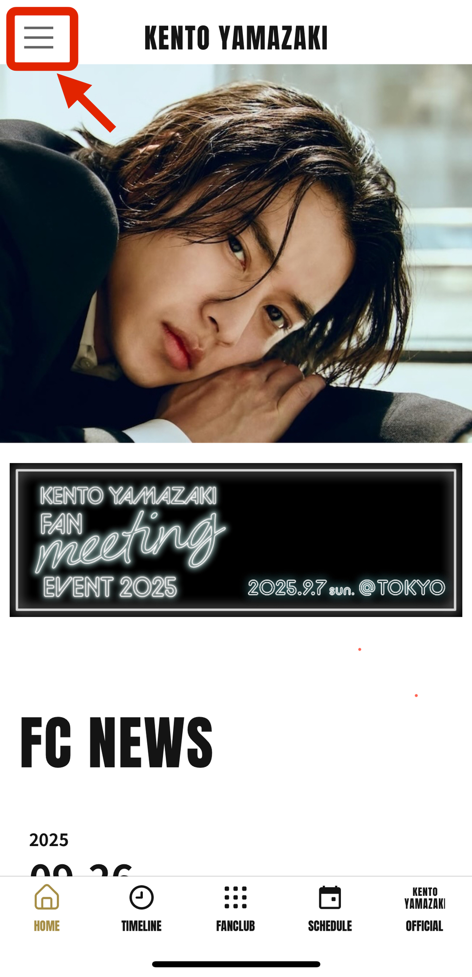 ・『KENTO YAMAZAKI OFFICIAL FANCLUB』会員の方はお持ちのBitfan IDにて、アプリ左上の三本線をタップすると開くメニューよりログインをお願いいたします。