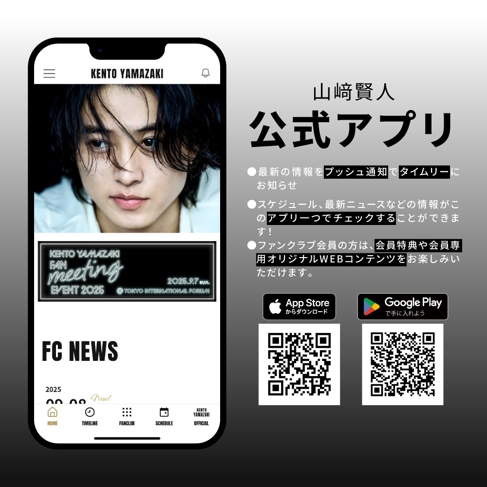 『KENTO YAMAZAKI OFFICIAL WEB SITE』と『KENTO YAMAZAKI OFFICIAL FANCLUB』のコンテンツがアプリ上からもご覧いただけるようになりました。